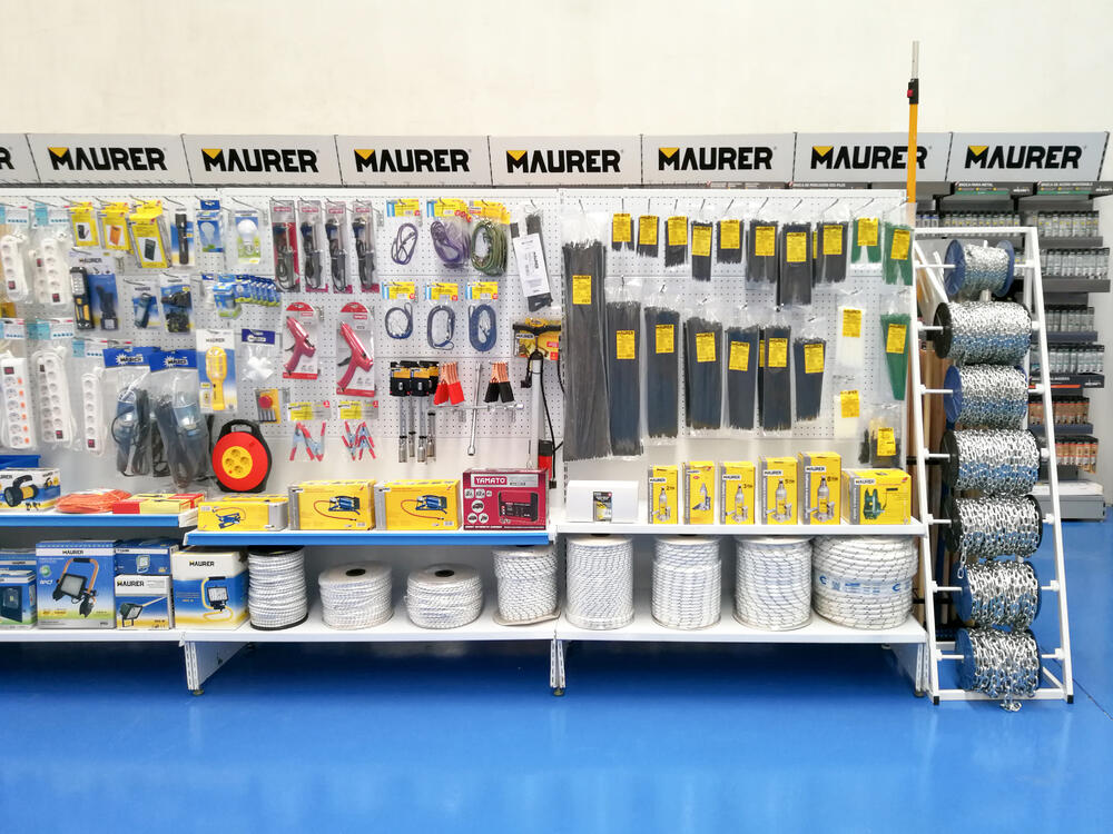 DATOS IMPLANTACIÓN:- Ubicación: Poligono Industrial - Tamaño local: 250 m2.- Metros lineales de expositores: 13 lineales.El cliente, asesorado por nuestro equipo de implantaciones, opta por surtido muy variado que abarca desde herramientas y bricolaje, pasando por electricidad básica y fontanería, menaje y jardín.
