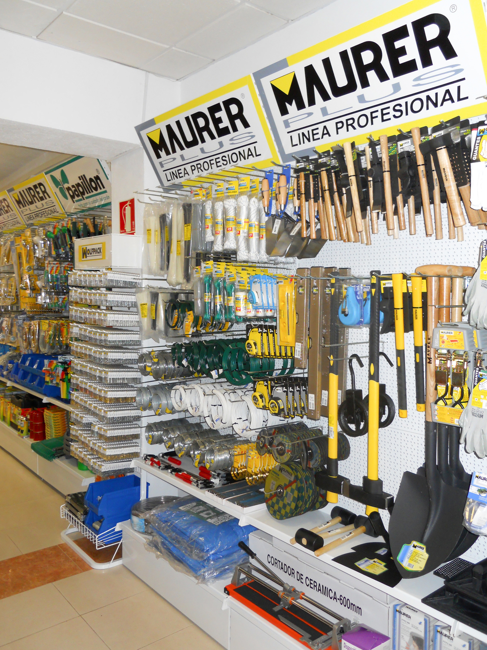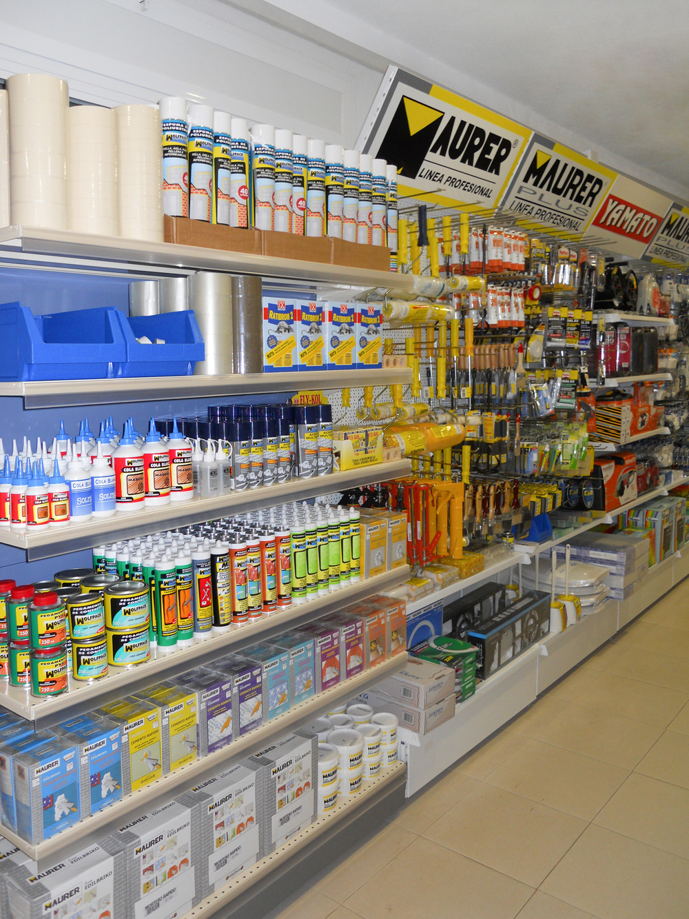 DATOS IMPLANTACIÓN:- Ubicación: centro ciudad- Tamaño local: 185 m2- Metros lineales de expositores: 16 linealesEl cliente, asesorado por nuestro equipo de implantaciones, opta por surtido muy variado que abarca desde herramientas y bricolaje hasta ferretería doméstica, pasando por, electricidad básica y fontanería, menaje y jardín.