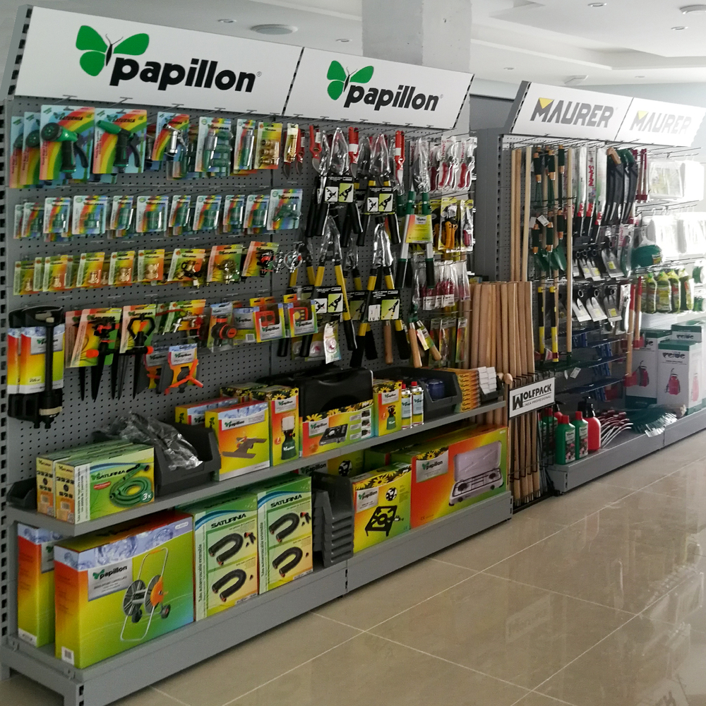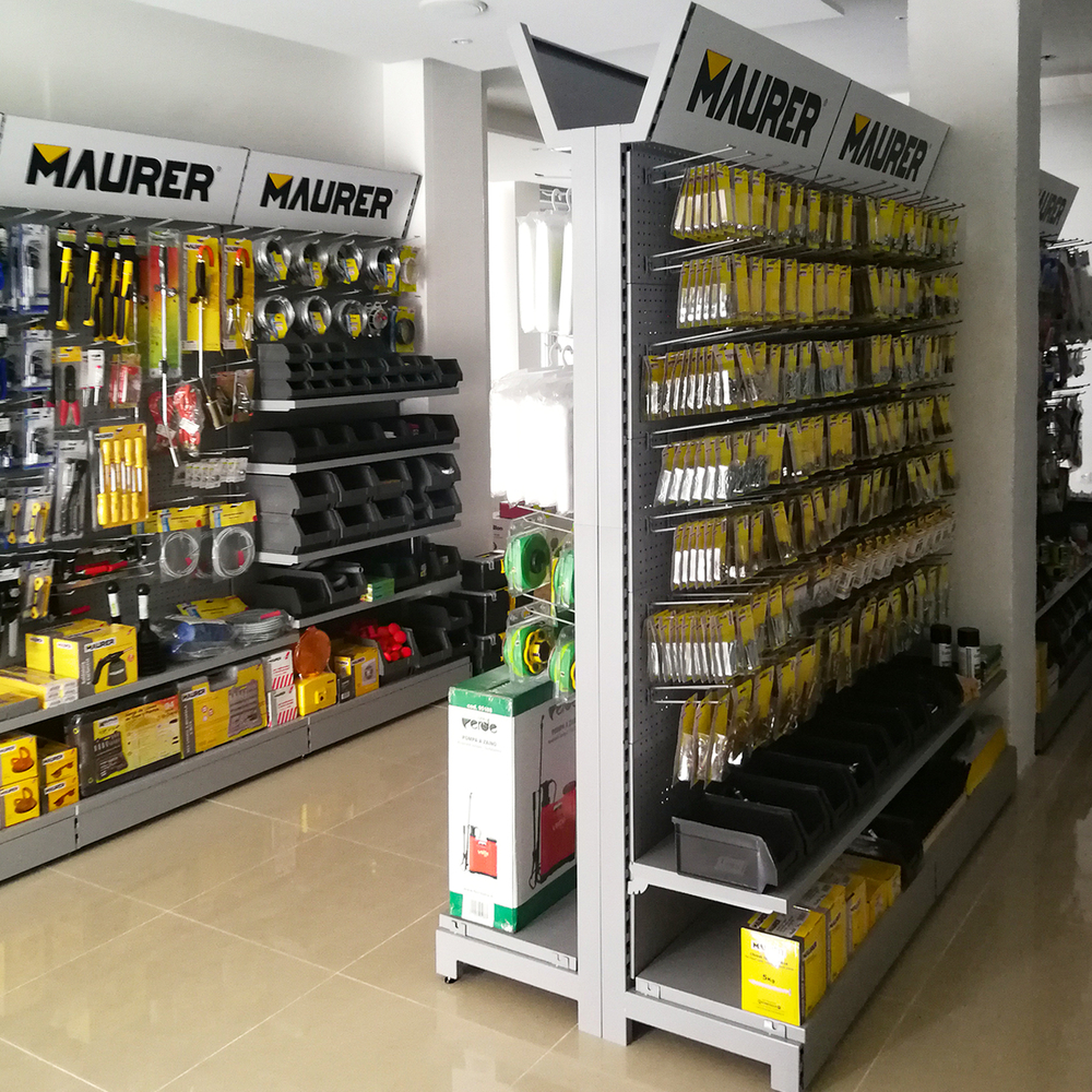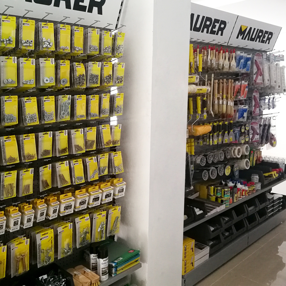 - Metros lineales de expositores: 23 lineales El cliente, asesorado por nuestro equipo de implantaciones, opta por surtido muy variado que abarca desde herramientas y bricolaje hasta ferretería doméstica, pasando por, electricidad básica y fontanería, menaje y jardín.