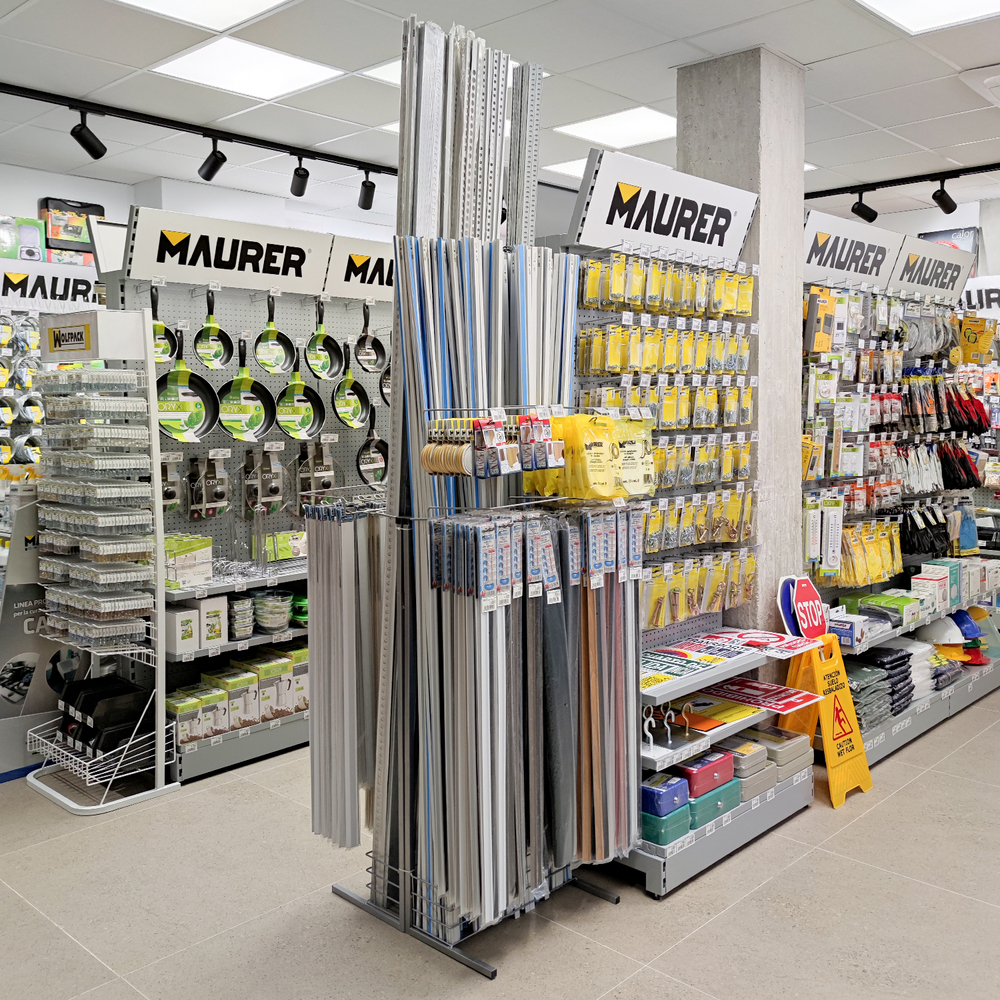 - Metros lineales de expositores: 30 lineales El cliente, asesorado por nuestro equipo de implantaciones, opta por surtido muy variado que abarca desde herramientas y bricolaje hasta ferretería doméstica, pasando por, electricidad básica y fontanería, menaje y jardín.