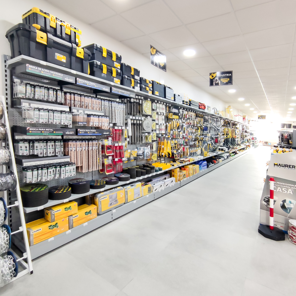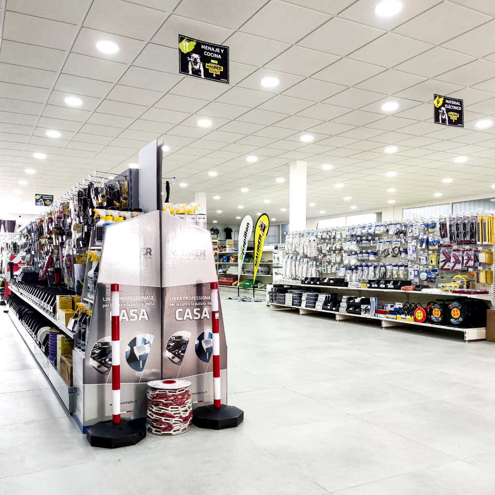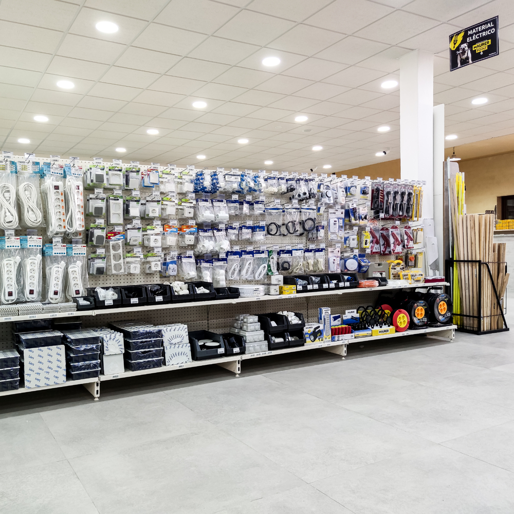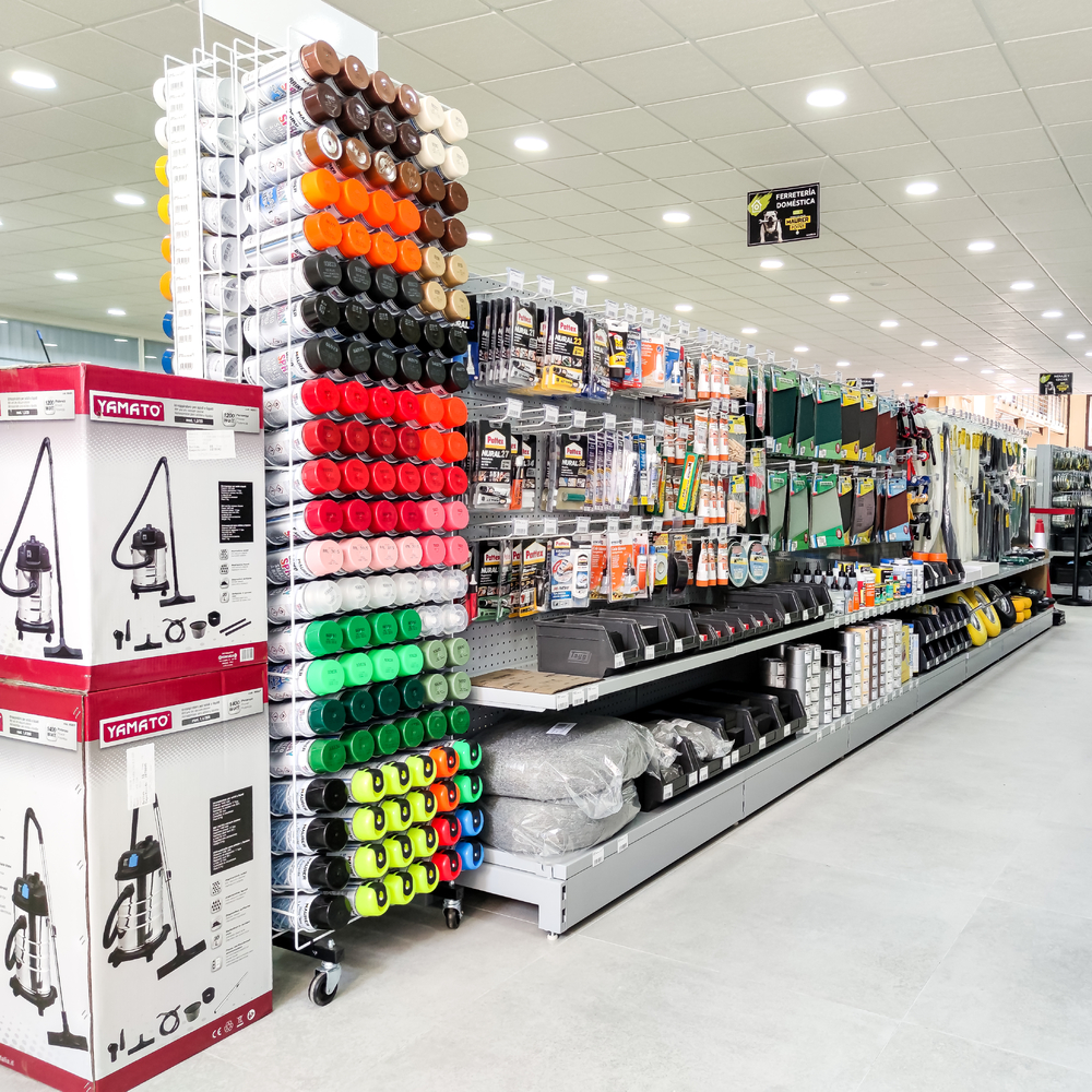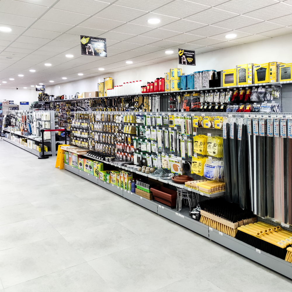 - Metros lineales de expositores: 46 lineales El cliente, asesorado por nuestro equipo de implantaciones, opta por surtido muy variado que abarca desde herramientas y bricolaje hasta ferretería doméstica, pasando por, electricidad básica y fontanería, menaje y jardín.