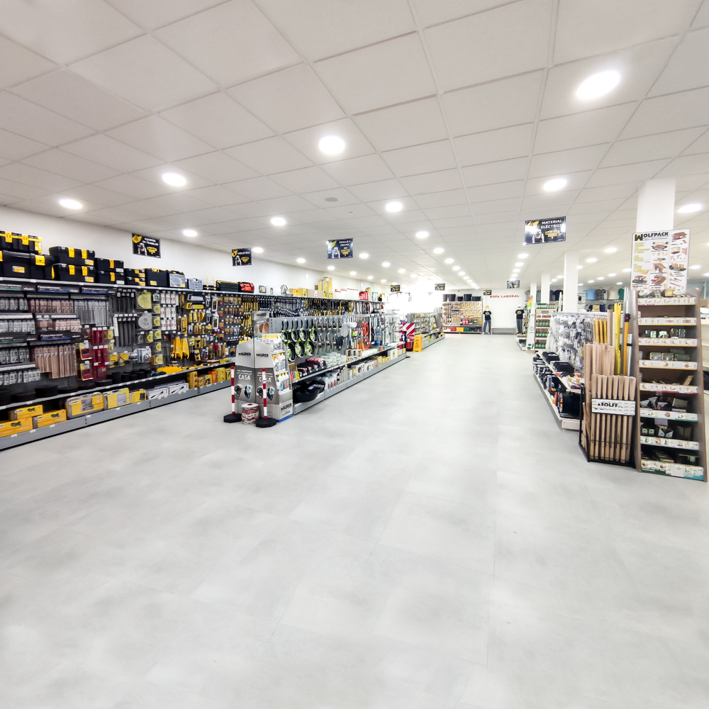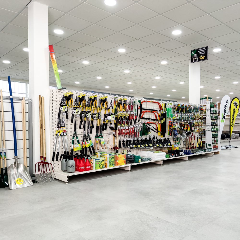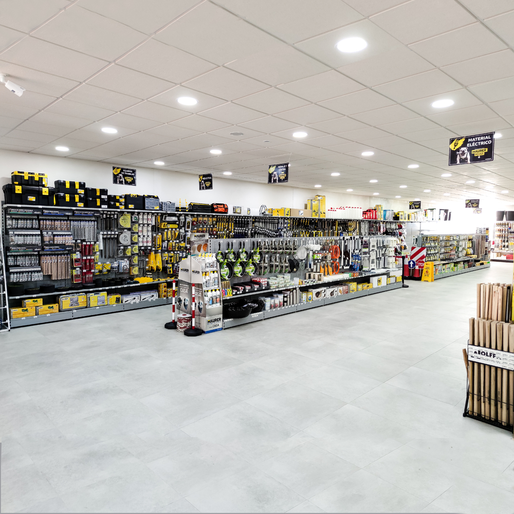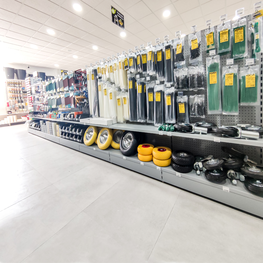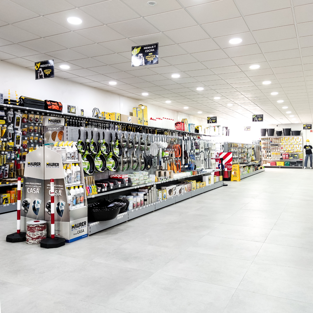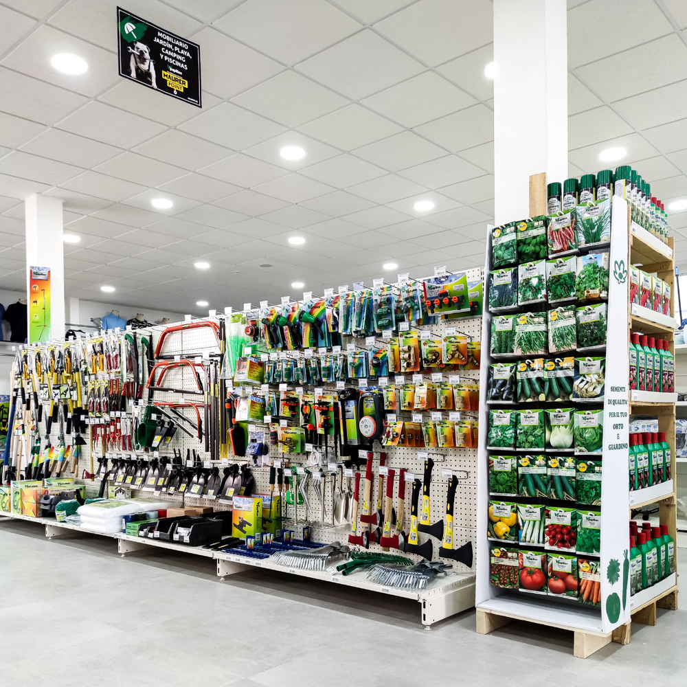 - Metros lineales de expositores: 46 lineales El cliente, asesorado por nuestro equipo de implantaciones, opta por surtido muy variado que abarca desde herramientas y bricolaje hasta ferretería doméstica, pasando por, electricidad básica y fontanería, menaje y jardín.