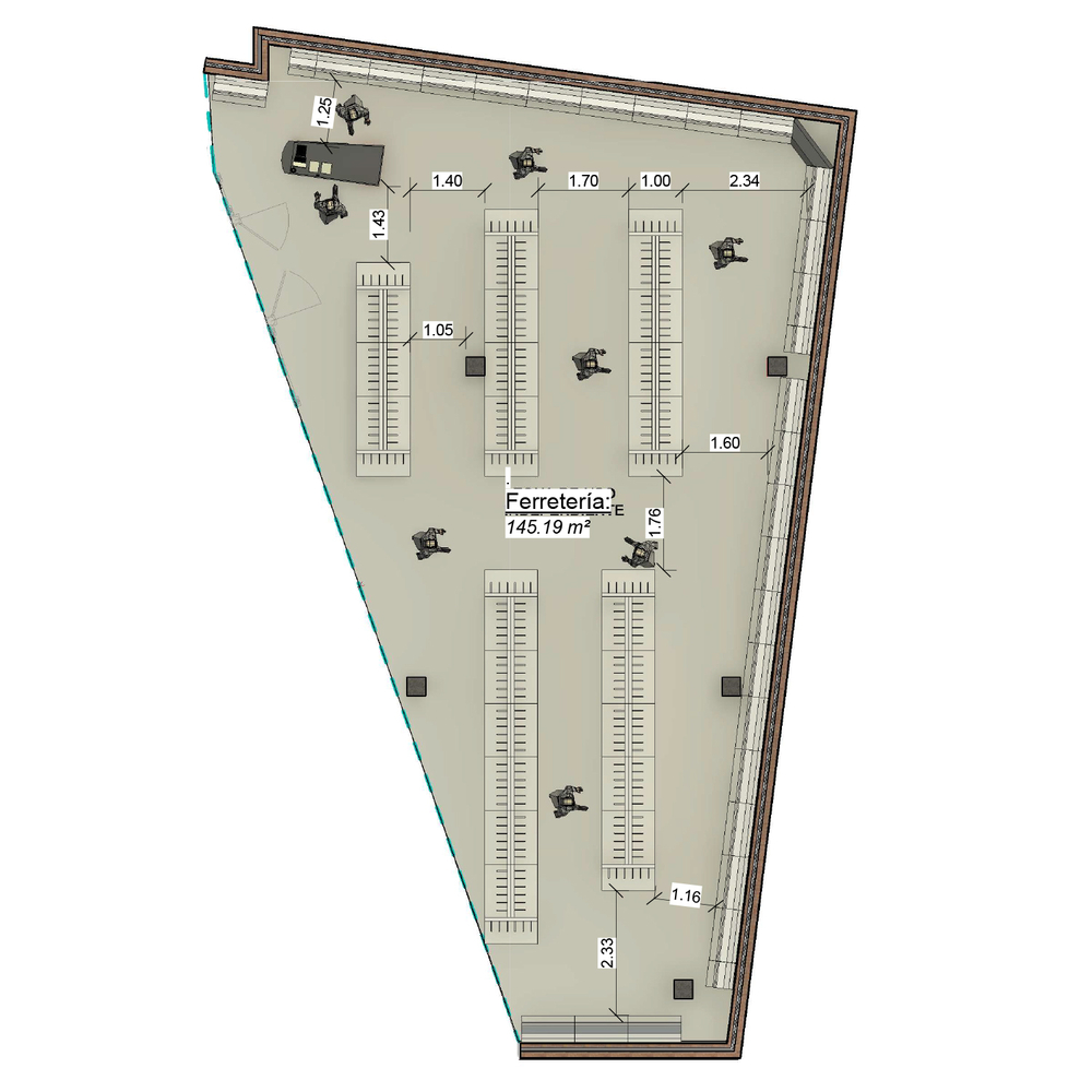 145 m2.- Metros lineales de expositores: