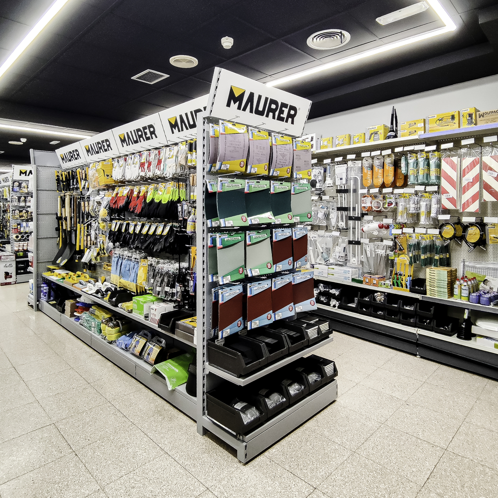 20 lineales.El cliente, asesorado por nuestro equipo de implantaciones, opta por surtido muy variado que abarca desde herramientas y bricolaje, pasando por electricidad básica y fontanería, menaje y jardín.